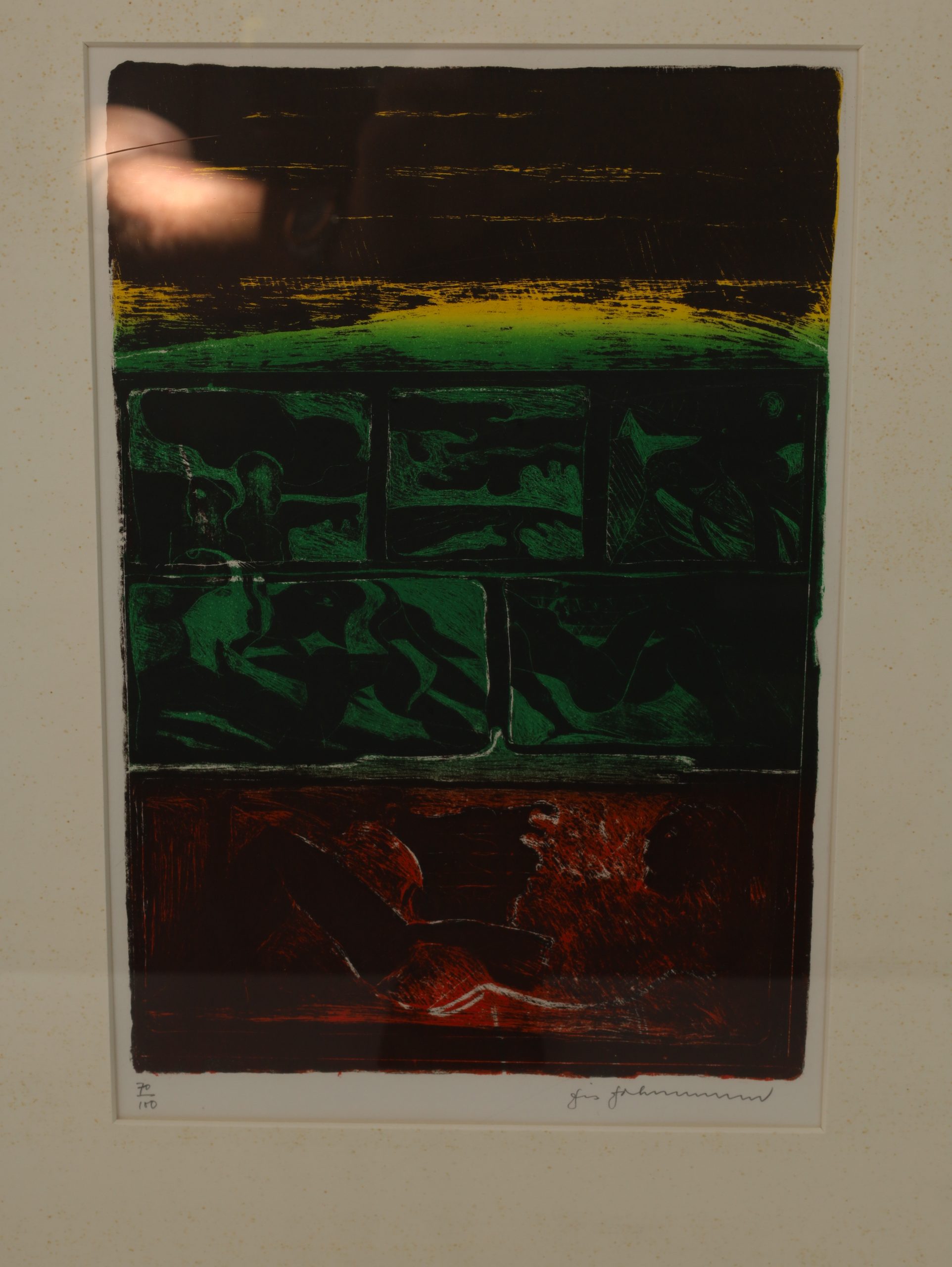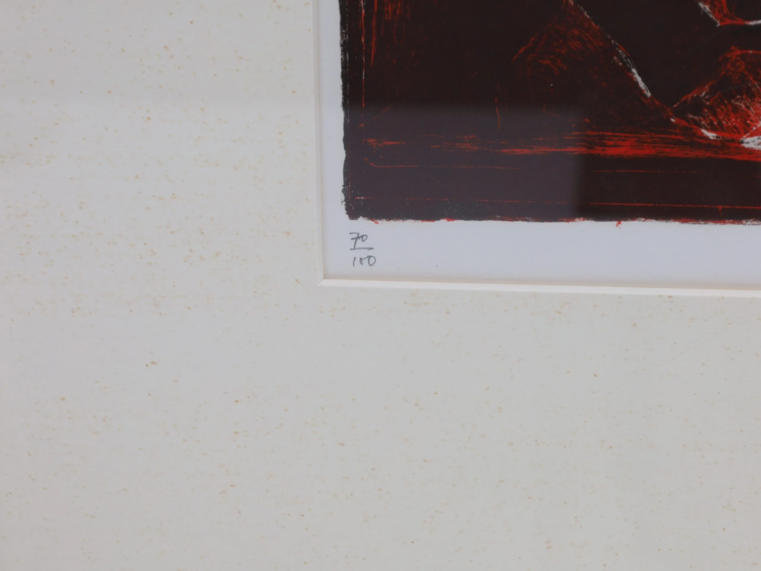 Et særegent og visuelt uttrykksfullt grafisk verk av den norske kunstneren Jens Johannessen (født 1934). Trykket er nummerert **70/100**, signert av kunstneren, og presentert i en stilig sølv metallramme.