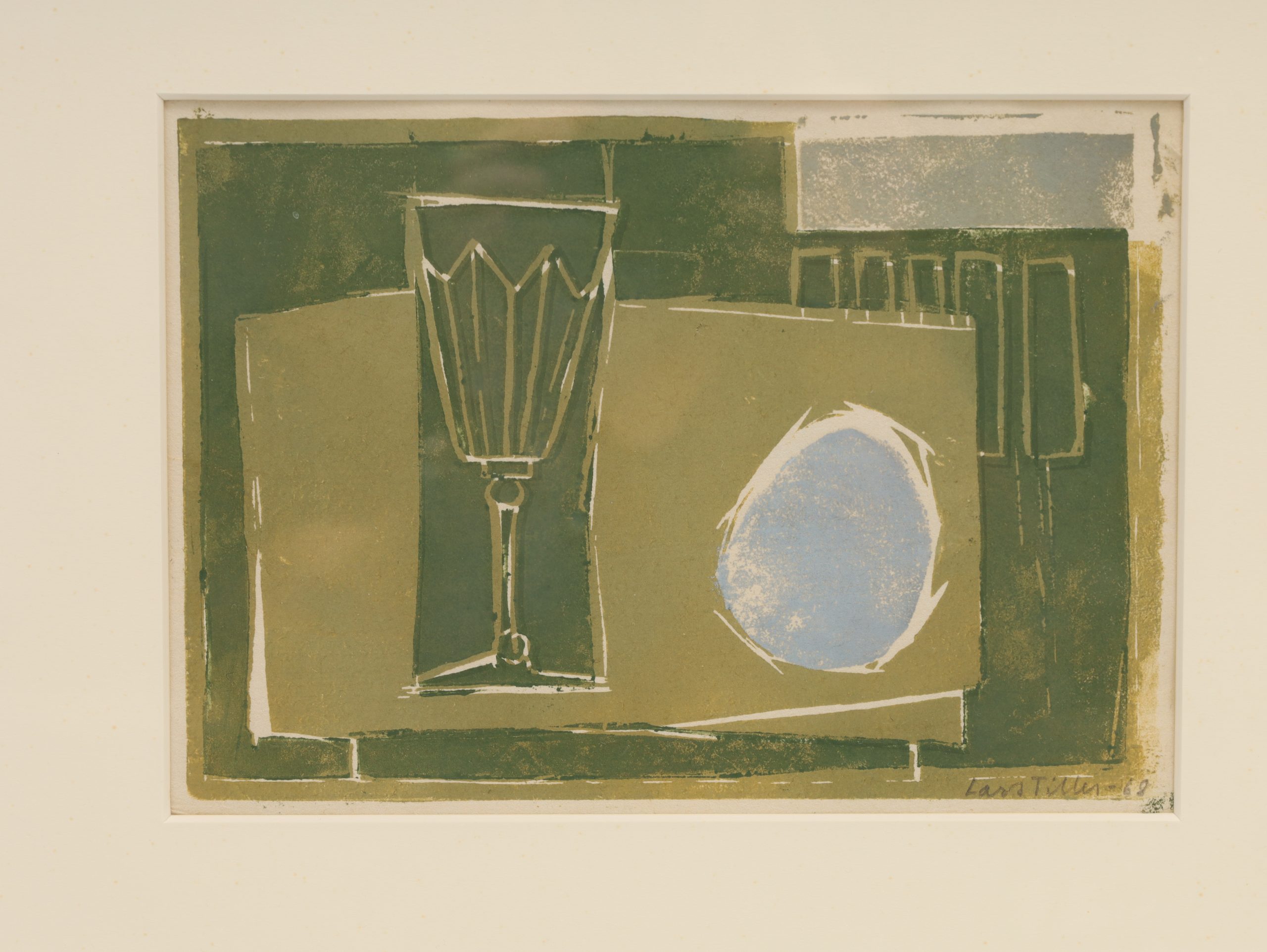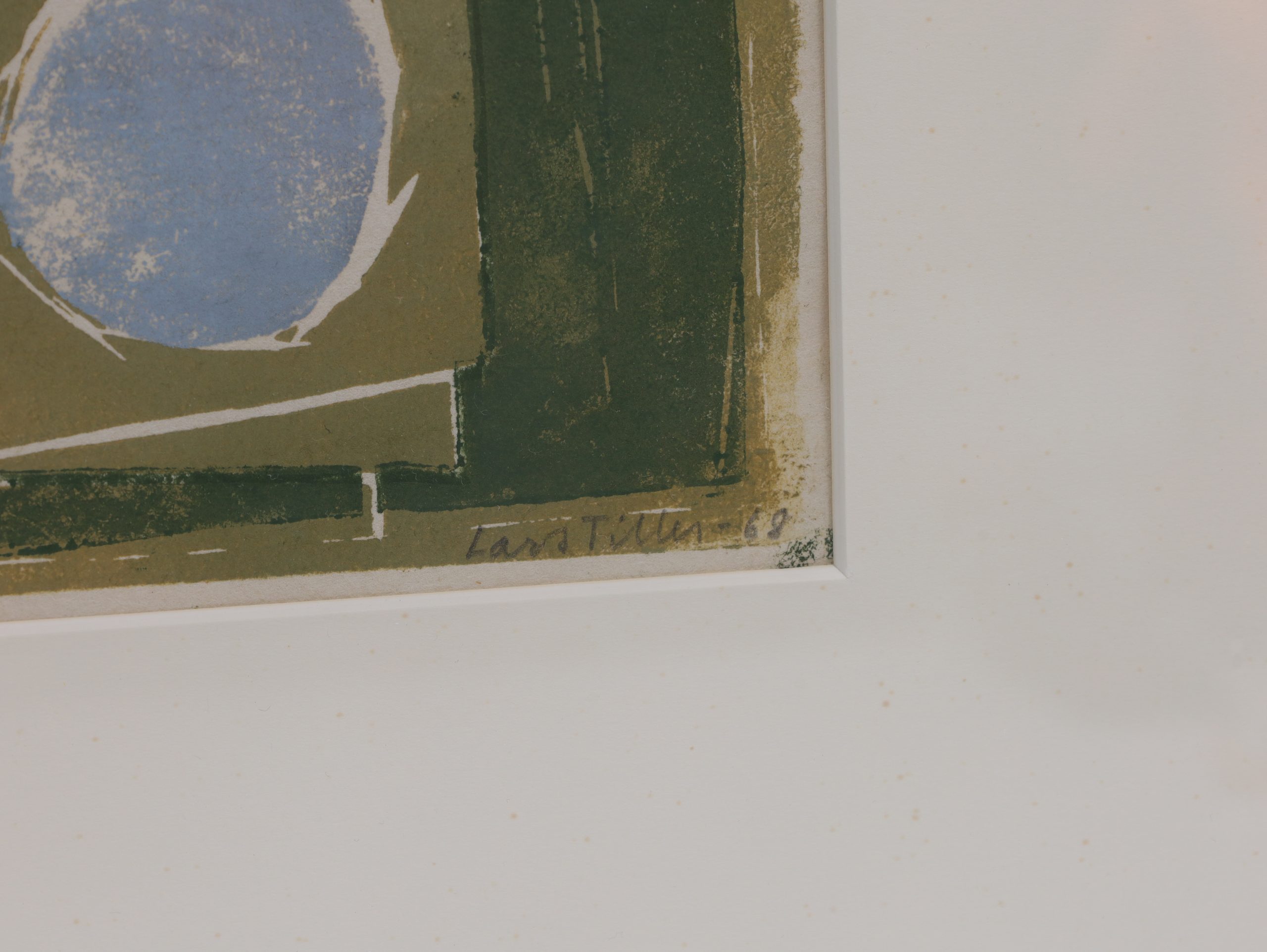 Originalt grafisk blad av den norske kunstneren **Lars Tiller**, en sentral skikkelse i etterkrigstidens modernistiske bevegelse i Norge.