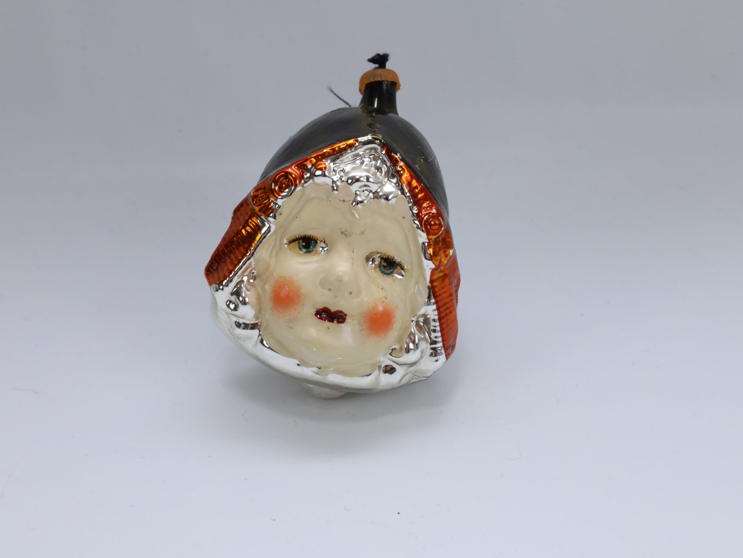 Sjelden tysk julekule i glass – barne annsikt, ca. 1940